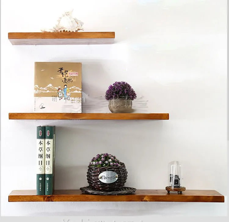 - Используя длинный деревянный брусок. Этот способ фиксации нельзя назвать абсолютно незаметным, так как используется брусок квадратного или прямоугольного сечения в качестве некоего основания для полки. Он фиксируется на стене, а на нем в нужном положении крепится полка. Либо она может фиксироваться на штырьках, выходящих из бруска. Этот вариант относится к незаметным, так как если подобрать брусок такого же цвета и фактуры, как сама полка, то он не будет бросаться в глаза. Скорее он будет выглядеть неким элементом самого изделия. Для фиксации полки на бруске применяется потайная фурнитура типа шпилек или штырьков, на которые и надевается полка.
