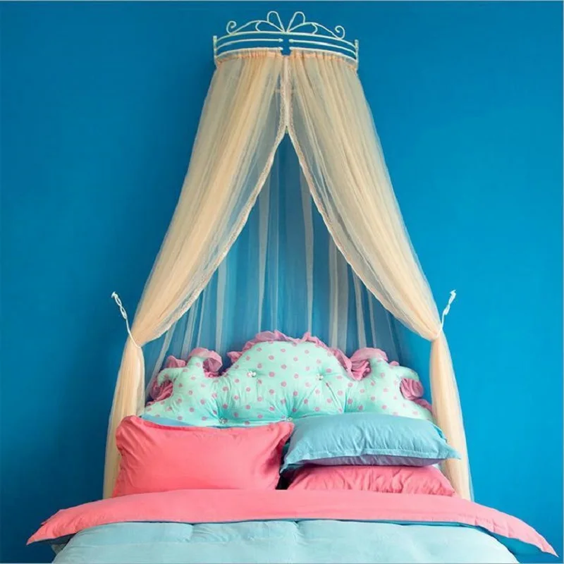 Идеальным выбором станет балдахин голубого, синего, сиреневого, бирюзового, зеленого, мятного и других подобных оттенков. Желтый, персиковый и бежевый цвета тоже не под запретом.
