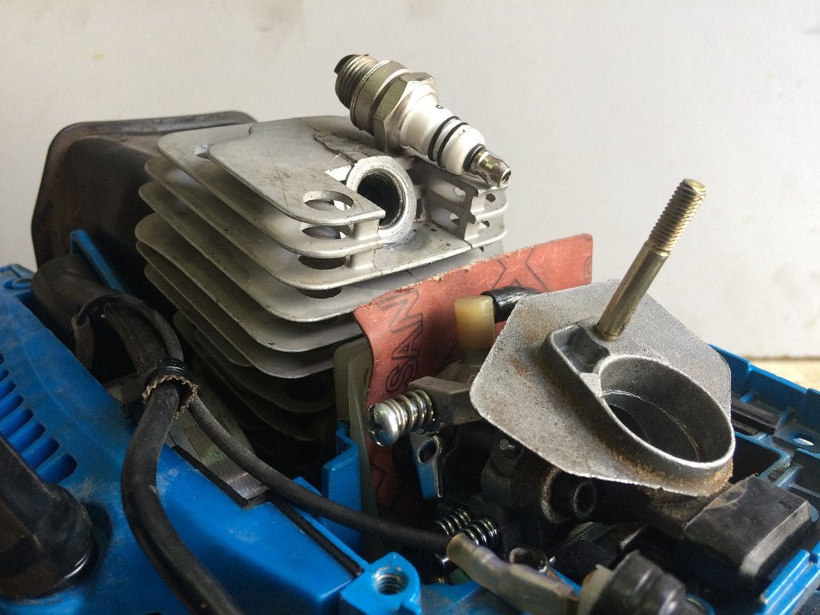 Простой, с высокими оборотами и минимальной мощностью. Если ваша пила набирает обороты до небес, но производит очень мало мощности при распиле, вполне вероятно, что она работает на обедненной смеси. Если вы поднимаете пилу высоко над пропилом, и требуется много времени, чтобы вернуться к холостому ходу, вероятно, она работает на обедненной смеси.